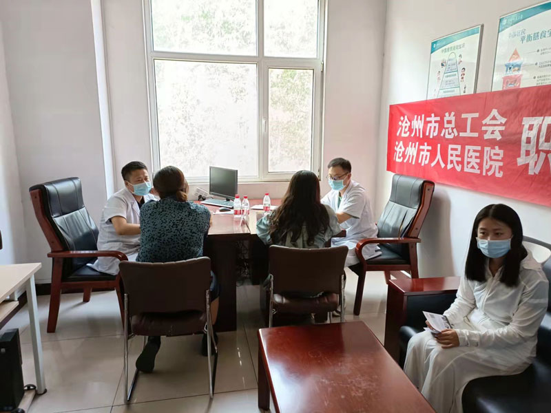 为进一步提升职工幸福指数,发挥职工健康生活室作用,公司工会联合区总工会、沧州市总工会特聘请沧州市人民医院中医科张龙、何肖两位医生,6月16日下午,来公司坐诊,免费为职工开展健康咨询和问诊活动。