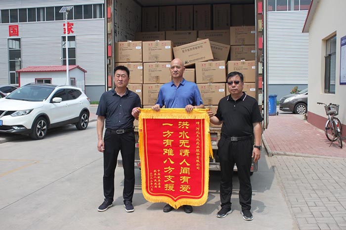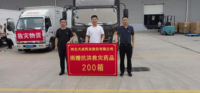 与此同时,在省药监局综合处赵志国部长统筹安排下,天成药业捐赠的200箱药品被运到石家庄与华润医药商业津冀大区、河北九州通医药捐赠的药品汇集,有序发往定兴县、涿州市、易县和涞水县五个县市用于救灾。