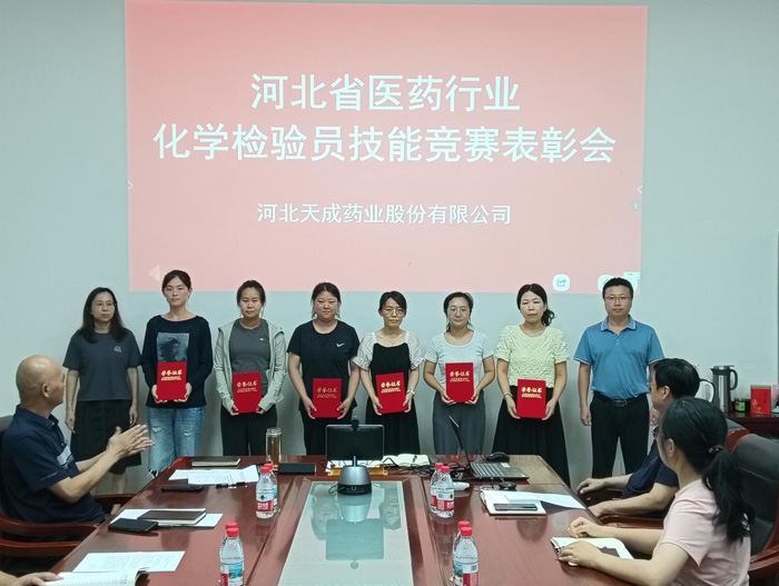 8月8日,公司在三厂会议室召开河北省医药行业化学检验技能比赛表彰会,对在此次赛事中斩获佳绩的团队及个人进行表彰。中心化验室、道恩药业化验员代表现场参会,渤海分公司化验室人员通过小鱼易连线上同步参与。会上,董事长王振刚发表重要讲话,向获奖集体与个人表示热烈祝贺,并结合行业发展态势对全体化验员提出明确要求,为公司高质量发展注入强劲动力。