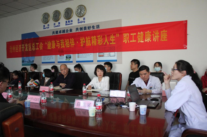 为进一步发挥“职工健康生活室”服务职工的作用,切实响应国务院《健康中国行动(2019-2030年)》发展战略,提高广大职工自我健康管理意识,掌握健康知识,建设健康环境,近日,公司工会联合沧州市人民医院特举办“健康与我相伴·护航精彩人生”职工健康讲座活动。